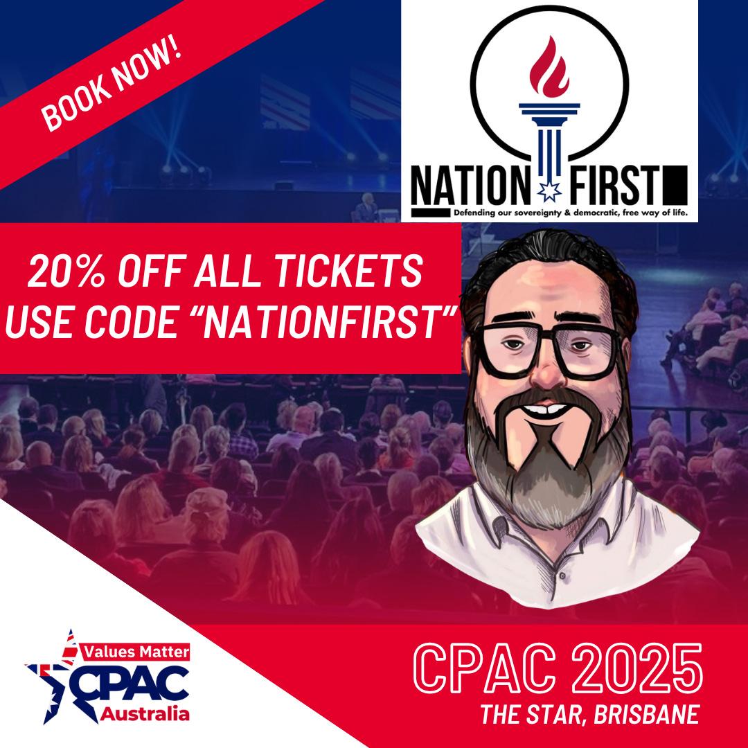 Get ready — CPAC 2025 is coming to Brisbane, 20–21 September, and it’s shaping up to be the biggest gathering of conservatives in the country. From Pauline Hanson and Jacinta Price to Matt Canavan, Jack Posobiec, Liz Truss, and many more, this is the one event where freedom fighters unite to take on the elites. Nation First readers get an exclusive 20% off — just use the code NATIONFIRST when booking your tickets here: https://www.cpac.network/cpac-25-tickets