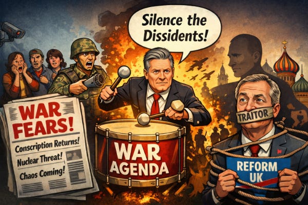 What Starmer is building is not a peace strategy. It is a permanent confrontation posture. One that locks Britain into endless defence spending. One that justifies censorship and “security” controls. One that suppresses dissent by associating it with foreign enemies. One that shields a collapsing political establishment from electoral backlash.